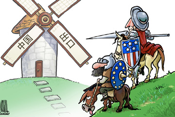 歐美在對(duì)華貿(mào)易方面有點(diǎn)像現(xiàn)代版的堂吉訶德,把中國出口錯(cuò)誤地看成敵人。