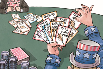 美國總統(tǒng)特朗普四處揮舞關(guān)稅與制裁“大棒”,致使美國國際形象受損。