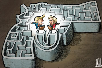 特朗普與希拉里就控槍展開論戰,答案明顯是無解。
