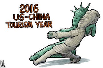 2016年是中美旅游年,期望中美兩個(gè)大國通過經(jīng)貿(mào)文化交流增進(jìn)了解,消除對抗。
