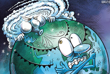 北極漩渦引發(fā)世界寒潮。