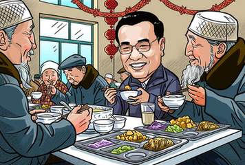 李克強(qiáng)2月1日來到寧夏固原市原州區(qū)中心敬老院,與老人們?cè)谝黄疬^小年??偫砼c坐在身旁的回族老人馬安倉邊吃邊拉家常,稱贊老人“紅光滿面”,還給他盛了一碗熱氣騰騰的餃子。隨后,李克強(qiáng)起身舉起手中的熱飲,祝愿各位老人身體健康,幸福長(zhǎng)壽。