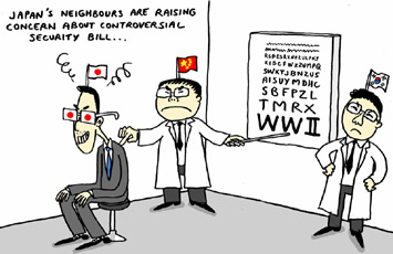 日本政治通過安保法案,寧當無視歷史的“大近視”,引發亞洲鄰國的抗議。