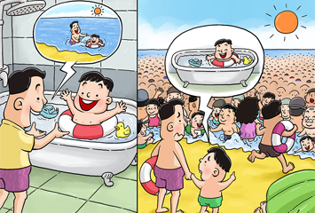 氣溫爆表,海濱爆擠,在海邊游泳還不如自家浴缸來得舒服。