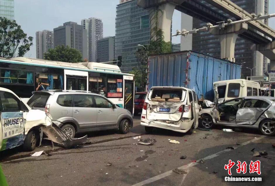 重慶大貨車制動(dòng)失效致17輛車連環(huán)相撞