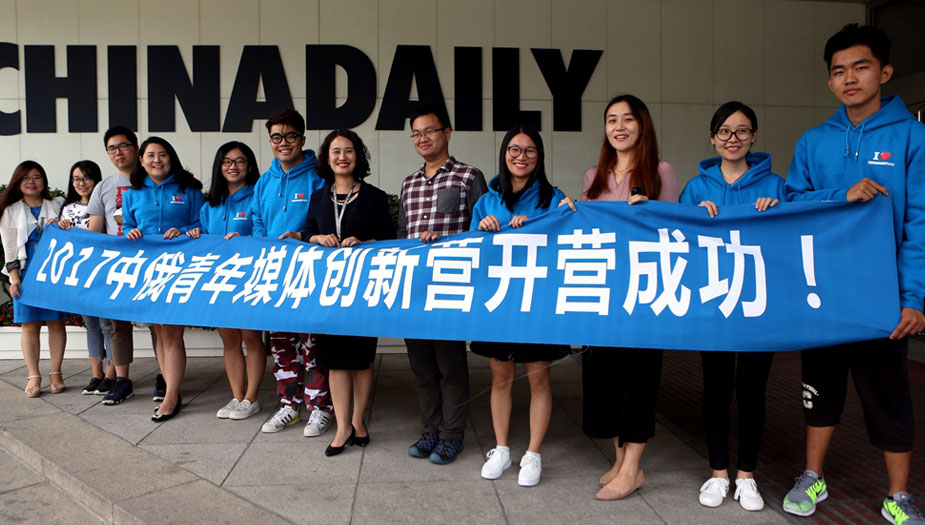 9月14日下午,2017中俄網絡媒體論壇的先行軍,中俄青年媒體創新營中方代表團在中國日報舉辦開營歡送會,來自全國五所大學的優秀青年代表興致盎然地參觀了中國日報社并與報社老師進行交談學習。