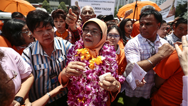 新加坡當選女總統現身 獲民眾簇擁人氣爆棚