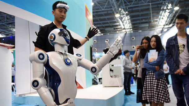 9月15日,參觀者在2017年全國大眾創業萬眾創新活動周北京會場主題展上參觀。本次展覽圍繞“雙創促升級,壯大新動能”主題,參展單位260余家,參展項目300余項,涉及人工智能、生物技術、新材料、節能環保、智能機器人、互聯網 等產業領域。