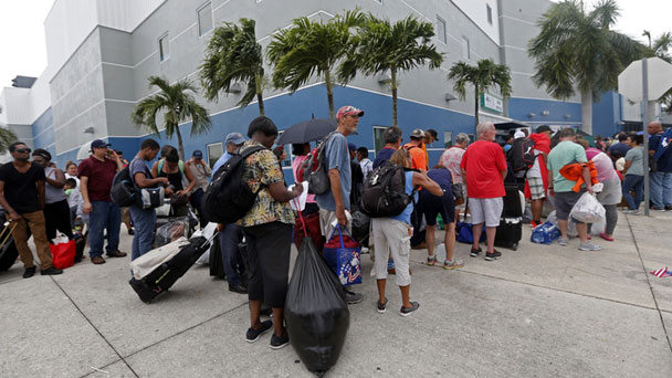 當地時間2017年9月9日,肆虐加勒比海地區的颶風“艾爾瑪”逼近美國佛羅里達州,佛州埃斯特羅的民眾提前前往臨時避難所避難。