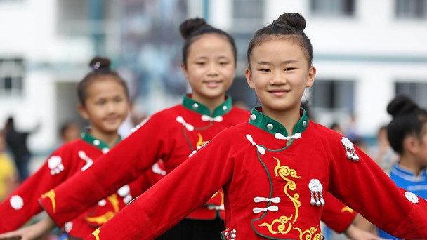 9月1日,河北省石家莊市仁華小學學生在操場上歡快地玩耍。新華社發(fā)(章朔 攝)  9月1日,貴州省黔東南苗族侗族自治州丹寨縣揚武小學學生在學習苗族錦雞舞。新華社發(fā)(袁永東 攝)  9月1日,重慶市黔江區(qū)濯水鎮(zhèn)堰塘村小學一年級學生在課間踢足球。