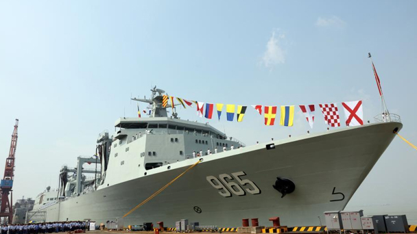 中國新型綜合補給艦首艦呼倫湖艦交接入列