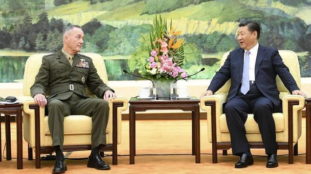 8月17日,國家主席、中央軍委主席習近平在北京人民大會堂會見來訪的美軍參聯會主席鄧福德。新華社記者李學仁攝