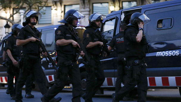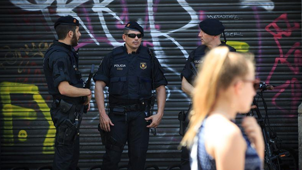 8月18日,在西班牙巴塞羅那市中心蘭布拉斯步行街,警察在街頭值勤。