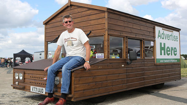 據英國媒體8月16日報道,英國牛津郡52歲的的凱文·尼克斯是一名園丁,2015年他將自己的帕薩特汽車改裝成一個可以移動的簡易木屋。這間木屋能夠以每小時159公里的速度在路上飛馳,被認為是世上速度最快的小木屋。