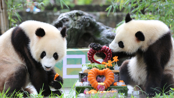 龍鳳胎大熊貓“青青”“冰冰”迎來兩歲生日