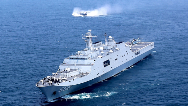 8月上旬至中旬,南海艦隊某登陸艦支隊聯合兄弟單位在某海域進行立體投送登陸演練。