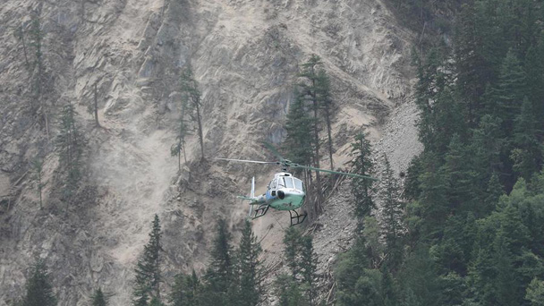 8月10日,一架直升機載著兩名九寨溝景區箭竹海景點受困受傷人員脫離困境。新華社記者 江宏景 攝  8月10日,一組搜救隊伍通過九寨溝景區五花海到熊貓海的滑坡路段。當日,在九寨溝地震災區,空中和地面多組搜救力量共計200余人,經過危險的滑坡體,前往九寨溝箭竹海景點搜救被困于此的10名群眾。