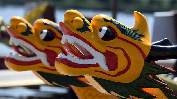 2017年8月13日,美國紐約,在法拉盛可樂娜公園舉行的第27屆紐約香港龍舟節比賽中,超過200支隊伍的逾2500名運動員卯足勁展開激烈競技,參與者們在比賽中奮力劃向終點線。