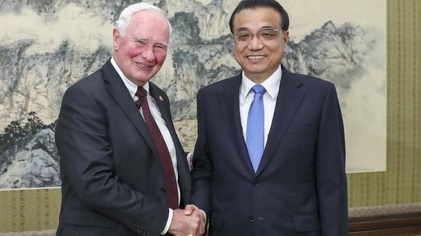 7月13日,國務院總理李克強在北京中南海紫光閣會見加拿大總督約翰斯頓。