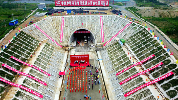 7月16日,中鐵隧道集團濟青高鐵青陽隧道勝利貫通慶祝儀式在青陽隧道進口舉行。青陽隧道全長10.1公里,位于濟南市和濱州市鄒平縣交界處,是濟青高鐵的控制性工程。