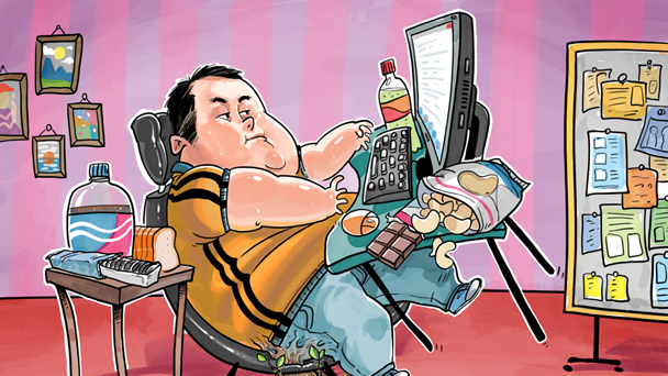 不健康的飲食習慣、久坐的生活方式導致職場白領出現“過勞肥”的現象。