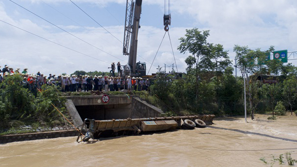 湘江支流出現潰口 危急時刻掛車堵向涵洞