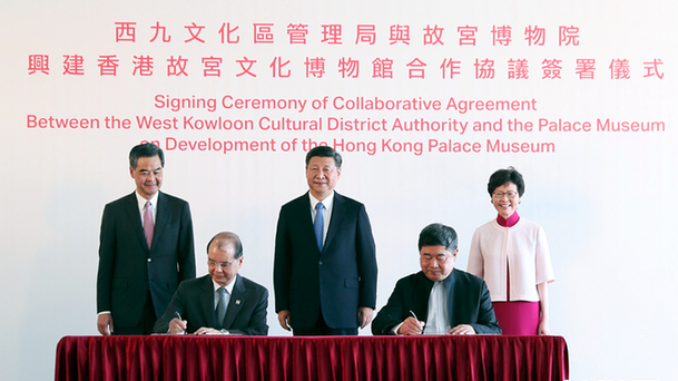 國家主席習近平29日下午在香港西九文化區出席《興建香港故宮文化博物館合作協議》簽署儀式。