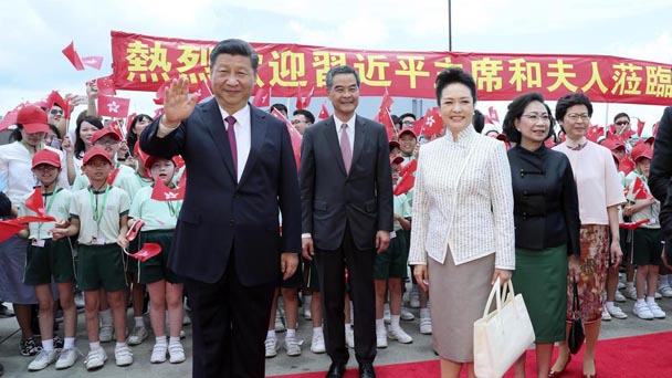 6月29日中午,中共中央總書記、國家主席、中央軍委主席習近平乘專機抵達香港,出席將于7月1日舉行的慶祝香港回歸祖國20周年大會暨香港特別行政區第五屆政府就職典禮并視察香港。新華社記者 蘭紅光 攝  6月29日中午,中共中央總書記、國家主席、中央軍委主席習近平乘專機抵達香港,出席將于7月1日舉行的慶祝香港回歸祖國20周年大會暨香港特別行政區第五屆政府就職典禮并視察香港。