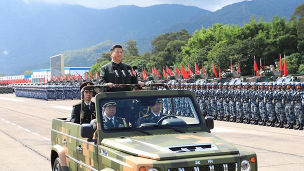 6月30日,中共中央總書記、國家主席、中央軍委主席習近平在香港石崗軍營視察并檢閱中國人民解放軍駐香港部隊。