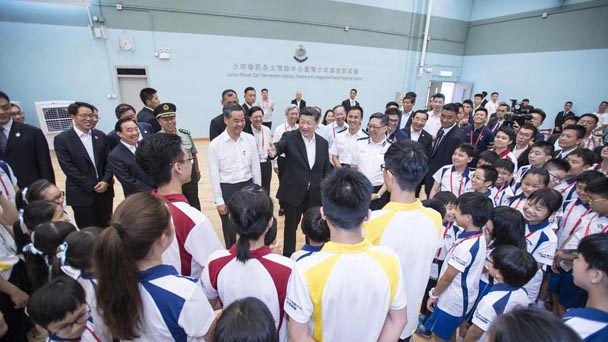 6月30日上午,國家主席習近平來到香港少年警訊永久活動中心暨青少年綜合訓練營考察,看望正在訓練的香港青少年。新華社記者 李濤 攝  6月30日上午,國家主席習近平來到香港少年警訊永久活動中心暨青少年綜合訓練營考察,看望正在訓練的香港青少年。
