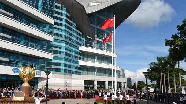 7月1日,香港特別行政區政府在金紫荊廣場舉行升旗儀式,慶祝香港回歸祖國20周年。新華社記者 吳曉凌