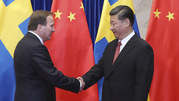 6月26日,國(guó)家主席習(xí)近平在北京人民大會(huì)堂會(huì)見瑞典首相勒文。