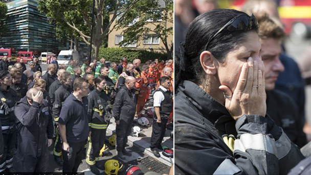 英急救人員舉行默哀儀式 悼念火災(zāi)遇難者
