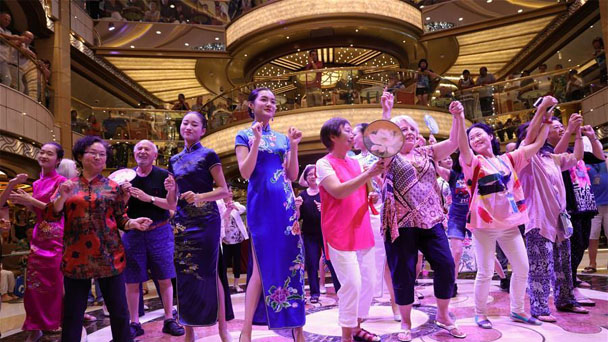 6月15日,在從斯里蘭卡科倫坡前往馬來西亞檳城的航段上,伴著《最炫民族風》的動感旋律,工作人員“快閃”起舞,吸引不少乘客加入。