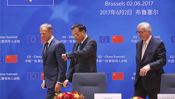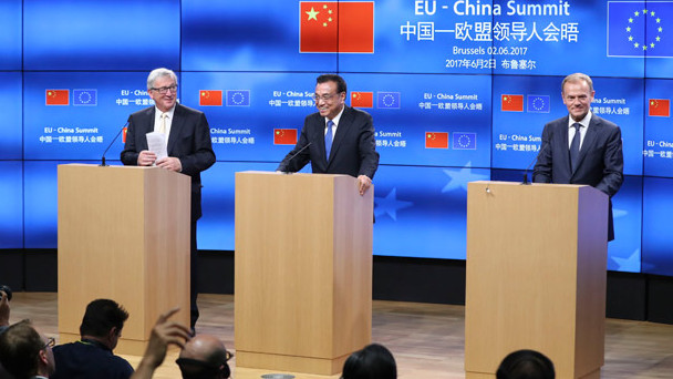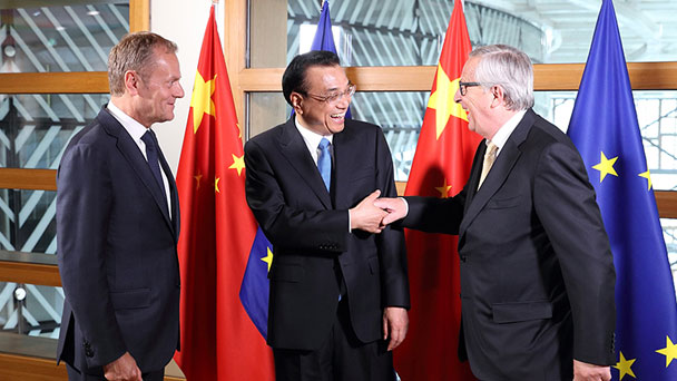 當地時間6月2日下午,國務院總理李克強同歐洲理事會主席圖斯克、歐盟委員會主席容克共同會見記者,介紹第十九次中國-歐盟領導人會晤成果。新華社記者 謝環馳 攝  當地時間6月2日下午,國務院總理李克強同歐洲理事會主席圖斯克、歐盟委員會主席容克共同會見記者,介紹第十九次中國-歐盟領導人會晤成果。