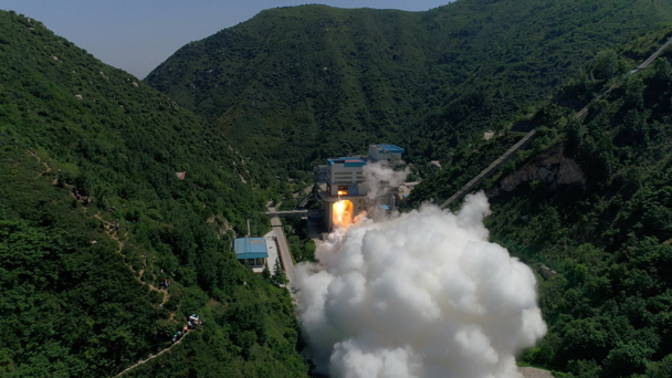 在中國航天科技集團六院新一代火箭發動機試驗區,901號試車臺在為我國首臺泵后擺火箭發動機進行測試(5月27日攝)。6月2日,記者從中國航天科技集團六院了解到,我國首臺泵后擺火箭發動機首次試車獲得圓滿成功,成為世界上第二個掌握泵后擺核心技術的國家。