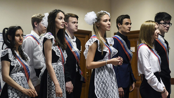 俄畢業(yè)生慶祝“最后的鐘聲” 集體盛裝狂歡