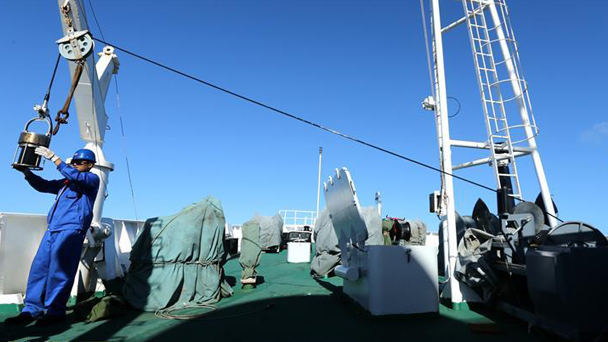 5月27日,工作人員回收6971水聲電話,它與聲學(xué)吊陣相互配合,互為備份,保障“蛟龍”號與母船的水聲通信聯(lián)系。