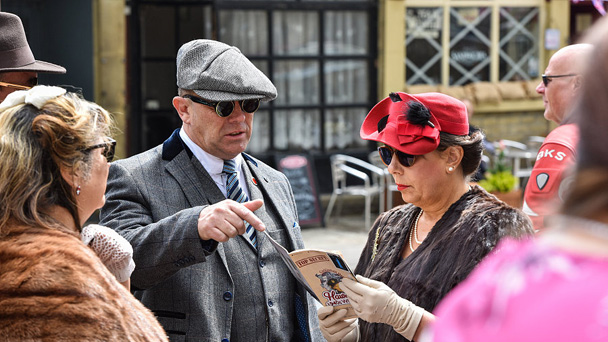 當地時間2017年5月21日,英國西約克郡,當地舉行20世紀40年代復古周末趴,數千民眾穿著當時的服裝參加。