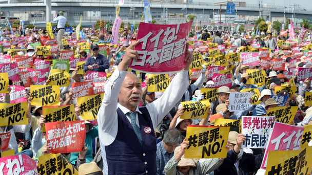 當地時間5月3日,數萬日本民眾在東京舉行集會,紀念“和平憲法”頒布70周年,抗議安倍政府的修憲企圖。
