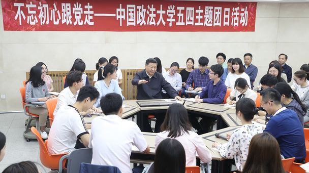 5月3日,中共中央總書記、國家主席、中央軍委主席習近平來到中國政法大學考察。這是習近平在學生活動中心參加民商經濟法學院本科二年級2班團支部開展的“不忘初心跟黨走”主題團日活動。