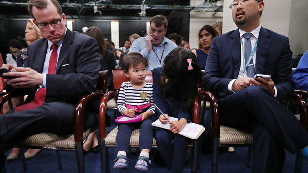 當地時間4月27日,白宮舉行一年一度的“帶孩子上班日”活動,參加活動的小朋友們可以在白宮參觀、向白宮發言人提問并和總統特朗普合影。