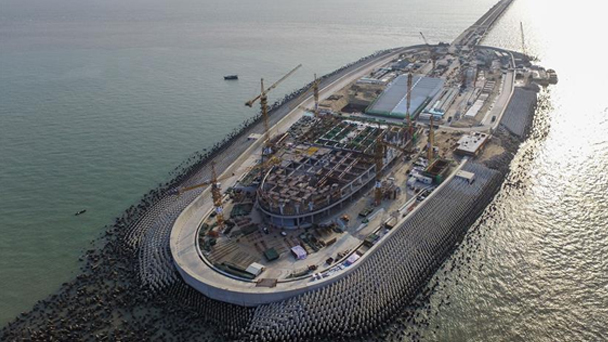 創下多項世界之最,橋島隧合一的港珠澳大橋海底隧道工程部門最終接頭將于5月2日正式吊裝沉放,它的對接成功將標志著全長5664米的海底隧道全線合龍。新華社記者 劉大偉攝  創下多項世界之最,橋島隧合一的港珠澳大橋海底隧道工程部門最終接頭將于5月2日正式吊裝沉放,它的對接成功將標志著全長5664米的海底隧道全線合龍。