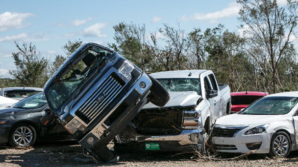 4月30日,在美國得克薩斯州坎頓,人們在龍卷風過后清理現場。