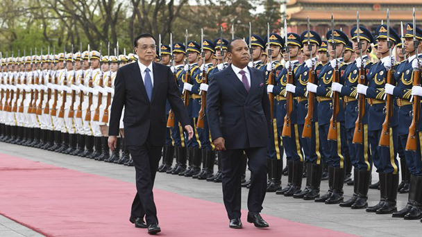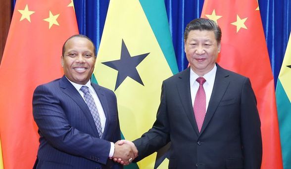 4月14日,國家主席習近平在北京人民大會堂會見圣多美和普林西比總理特羅瓦達。