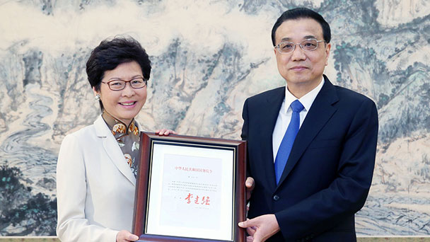 李克強(qiáng)向林鄭月娥頒發(fā)任命令