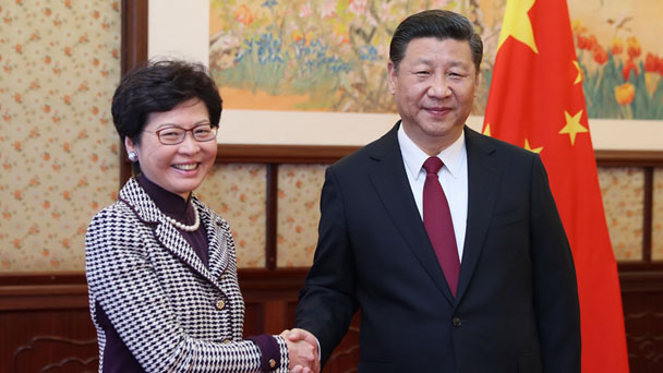 4月11日,國家主席習(xí)近平在中南海會見新當(dāng)選并獲中央政府任命的香港特別行政區(qū)第五任行政長官林鄭月娥。