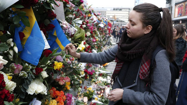 瑞典群眾用鮮花悼念卡車襲擊遇難者