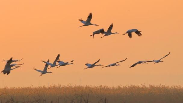 白鶴體態輕盈,婀娜多姿,在凌空飛舞時猶如美麗的白衣仙女,落地有如朵朵白蓮綻放,是濕地一道獨特的風景。