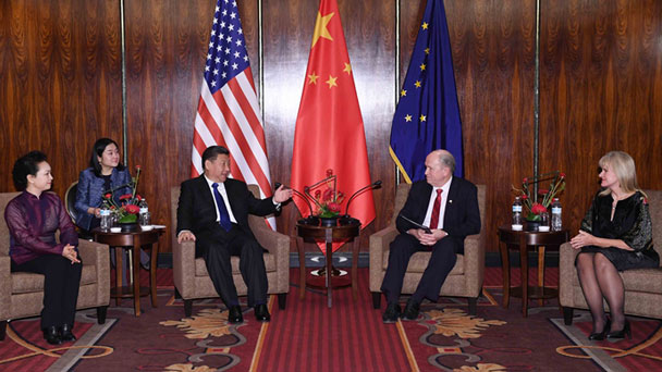 當地時間4月7日,國家主席習近平在美國阿拉斯加州安克雷奇會見阿拉斯加州州長沃克。新華社記者 饒愛民 攝